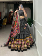 A exquisite Tussar Silk Lehenga Set with Perfect floral abd patola print design to make you feel utterly beatific